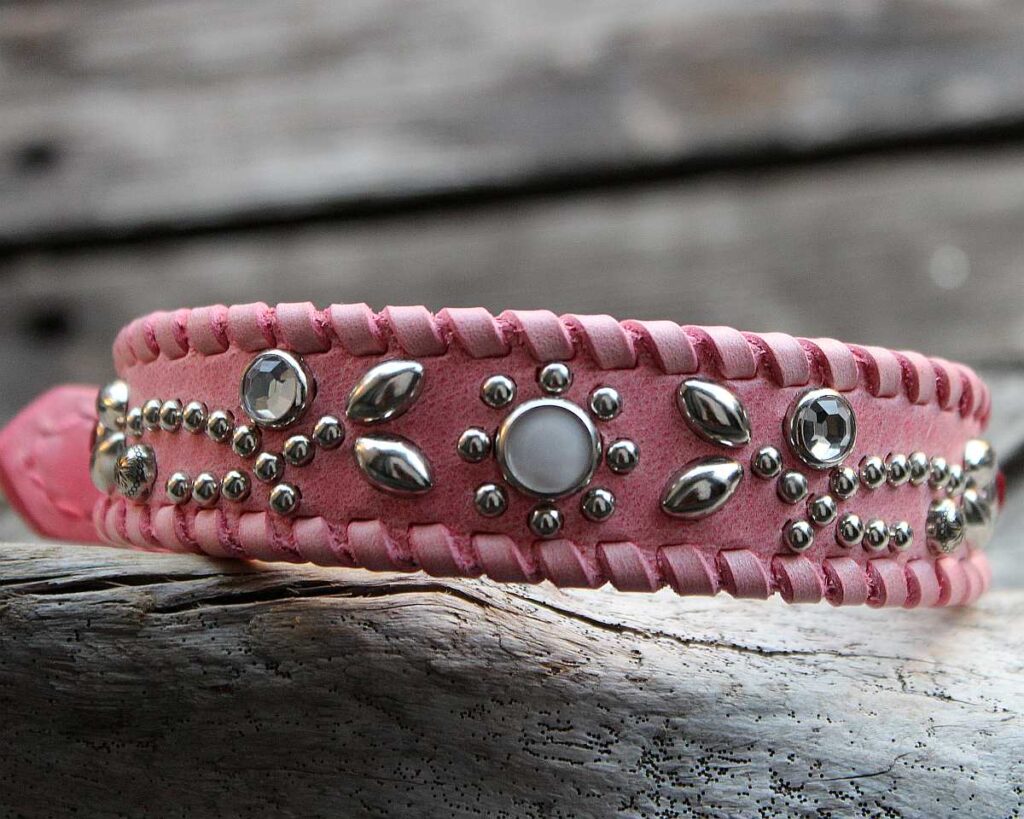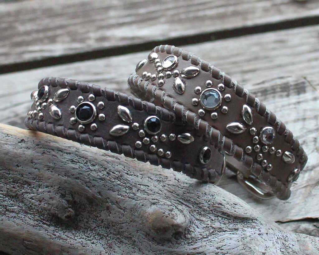 サイズ・・首輪の場合は首回り。ハーフチョークの場合は頭回り。測り方はこちら