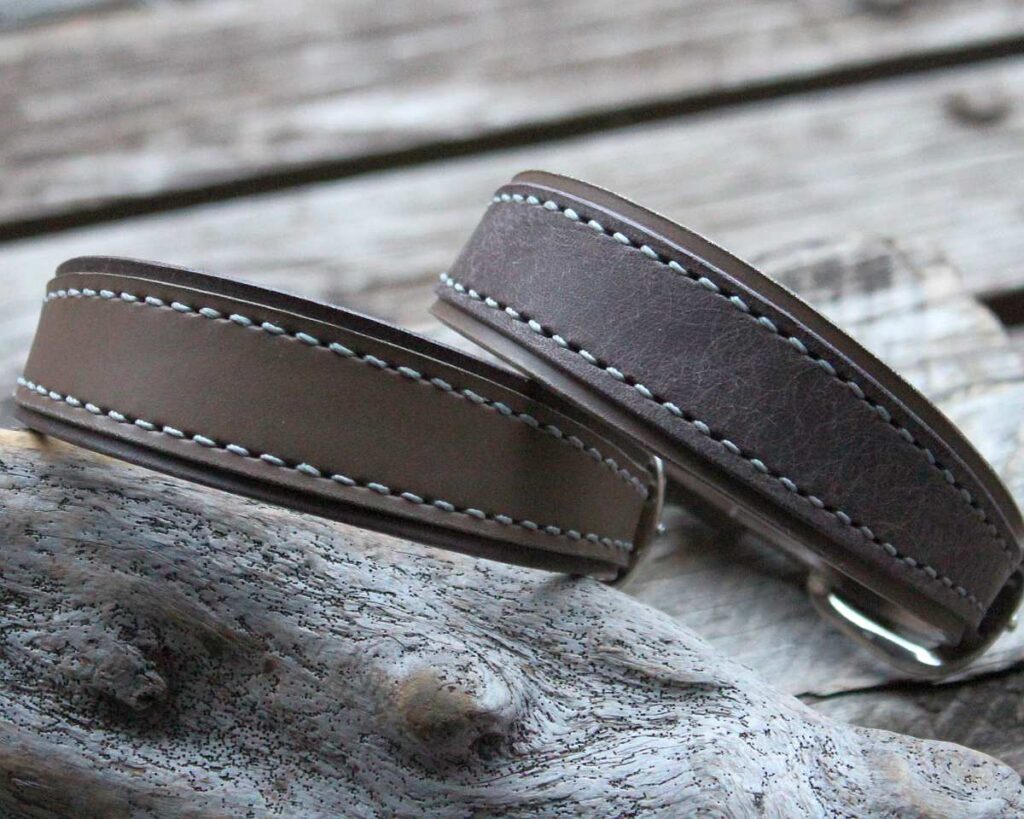 製作できないもの・・丸革リード、丸革チョーク、丸革ハーフチョークなど。丸革製品は4mm程度のとても厚い特殊な革を使い製作しています。今回仕入れた3色の革では製作することができません