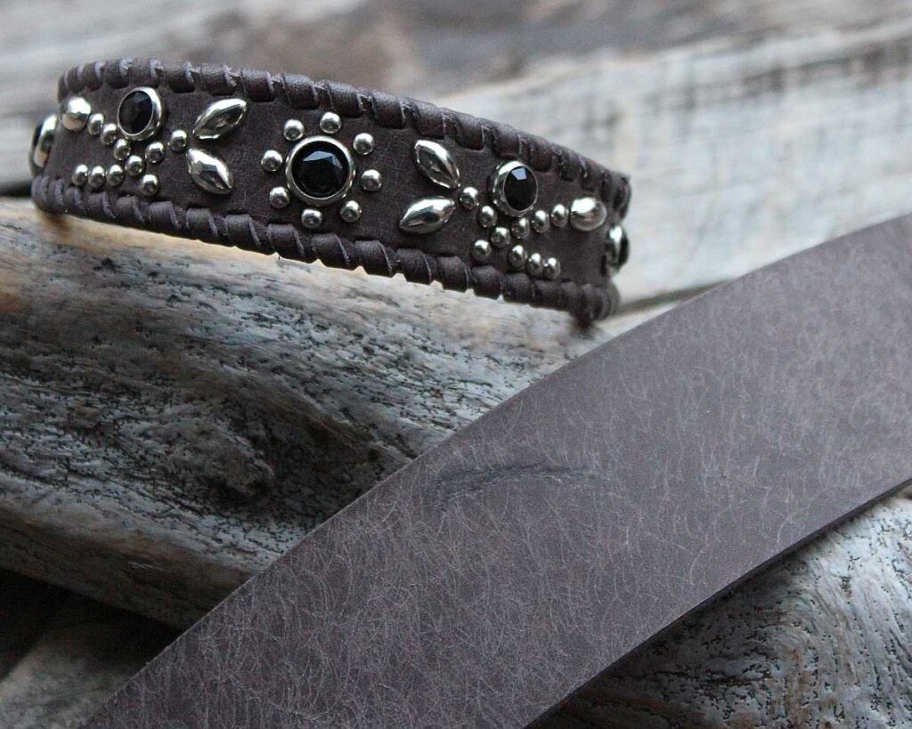 革の質感と相まって、大人っぽい雰囲気に仕上がります。
